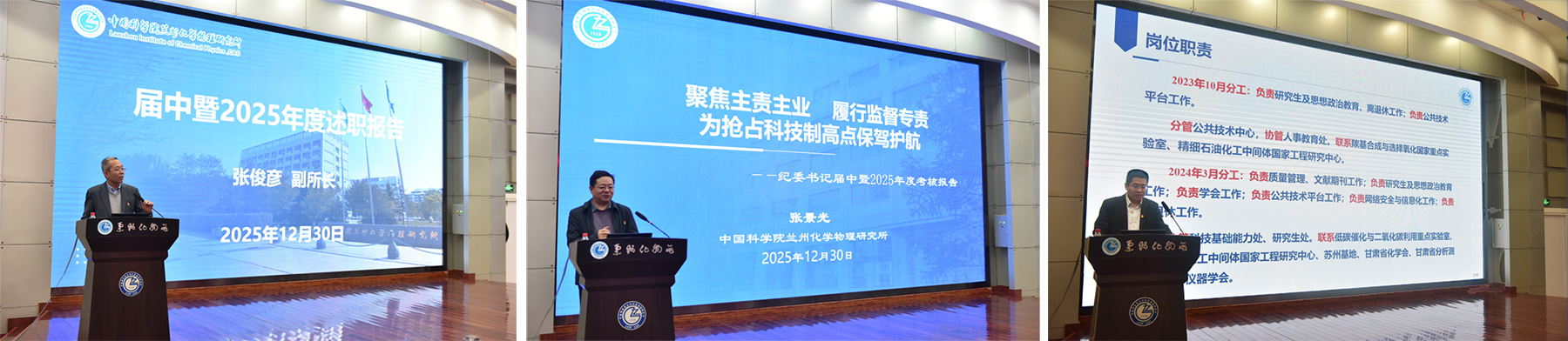 蘭州化物所副所長張俊彥、紀(jì)委書記張景光、副所長石峰分別就各自分管工作作了述職報(bào)告。