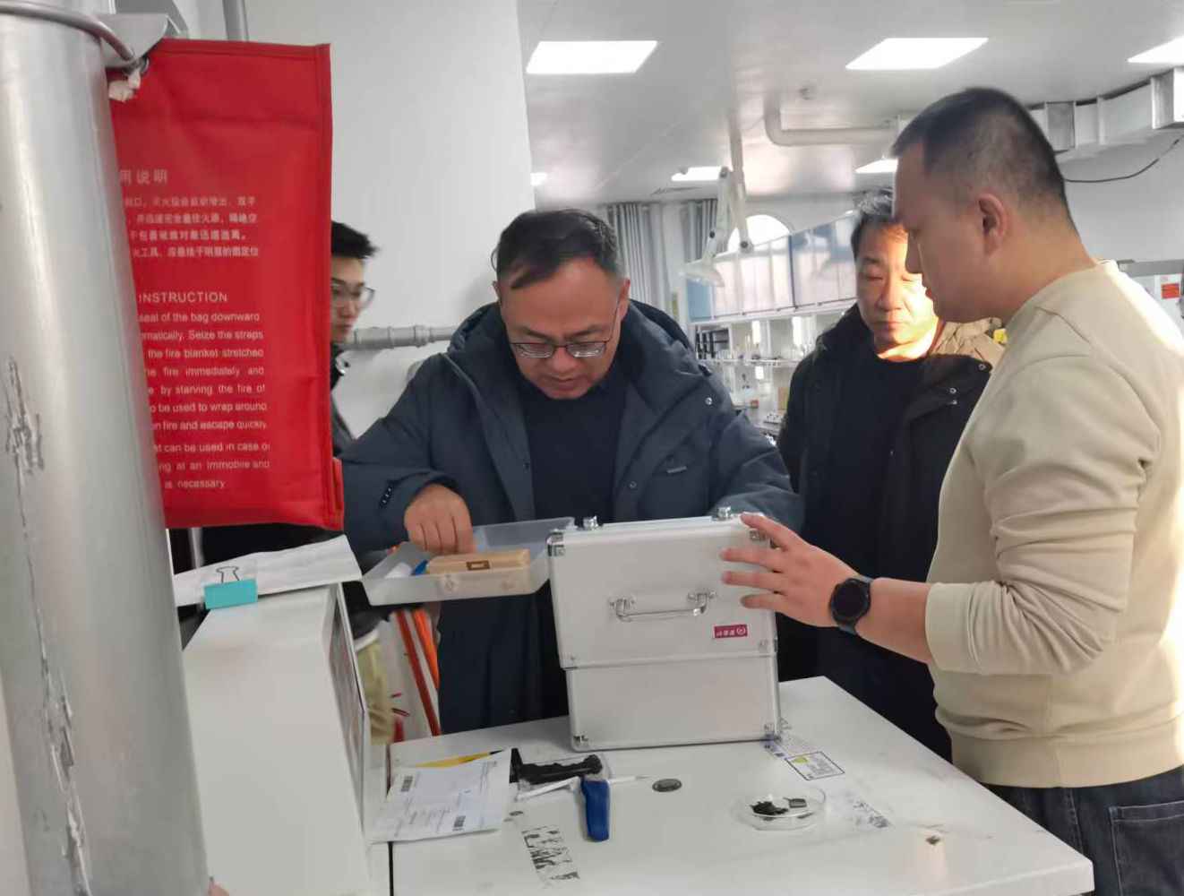 在實(shí)驗(yàn)室專項(xiàng)檢查環(huán)節(jié),檢查組重點(diǎn)核查“三高設(shè)備”以及各類實(shí)驗(yàn)儀器設(shè)備的運(yùn)行狀態(tài),細(xì)致檢查危險(xiǎn)化學(xué)品儲(chǔ)存、領(lǐng)用、廢棄等全流程管控落實(shí)情況,并現(xiàn)場測試通風(fēng)系統(tǒng)、應(yīng)急防護(hù)裝備的運(yùn)行有效性。針對檢查中發(fā)現(xiàn)隱患問題,檢查組當(dāng)場明確整改責(zé)任人、整改措施及完成時(shí)限,要求相關(guān)課題組立行立改、閉環(huán)管理,堅(jiān)決杜絕隱患遺留。