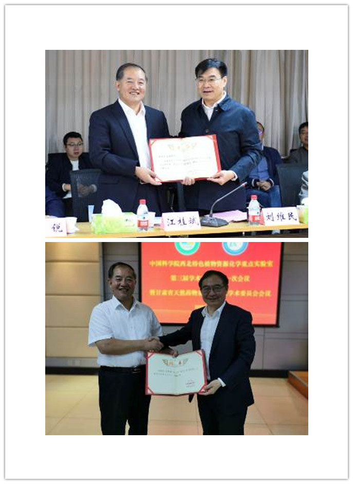 (上圖:劉維民頒發(fā)院重點實驗室學委會主任聘書 下圖:傅小鋒頒發(fā)甘肅省天然藥物重點實驗室學委會主任聘書;)