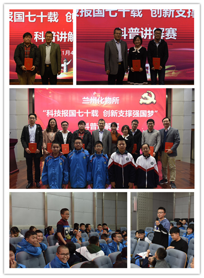 為慶祝中華人民共和國成立70周年和中國科學(xué)院建院70周年,弘揚(yáng)科學(xué)精神,11月4日,中國科學(xué)院蘭州化學(xué)物理研究所舉辦了“科技報國七十載創(chuàng)新支撐強(qiáng)國夢”科普講解賽。本次講解大賽邀請中科院蘭州分院中學(xué)七年級師生近300多人到場聆聽。研究所共有4名青年科研人員和4名研究生參加比賽,5名學(xué)生代表和參賽選手共同擔(dān)任評委。