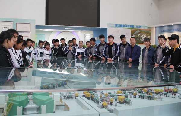 在中科院近代物理研究所,同學(xué)們參觀了蘭州重離子加速器國家實(shí)驗(yàn)室展廳,通過科研人員的講解了解到蘭州重離子加速器是我國規(guī)模最大、加速離子種類最多,能量最高的重離子研究裝置,主要技術(shù)指標(biāo)達(dá)到國際先進(jìn)水平,先后取得了以新核素合成、核質(zhì)量精確測(cè)量、重離子治癌研究等為代表的一批重要科研成果,使我國重離子物理及交叉學(xué)科研究進(jìn)入國際先進(jìn)行列。在科研人員的帶領(lǐng)下,同學(xué)們有幸親自走進(jìn)重離子加速器國家實(shí)驗(yàn)室,近距離對(duì)話科學(xué)大裝置,大家好奇的眼神,激動(dòng)的心情,溢于言表。