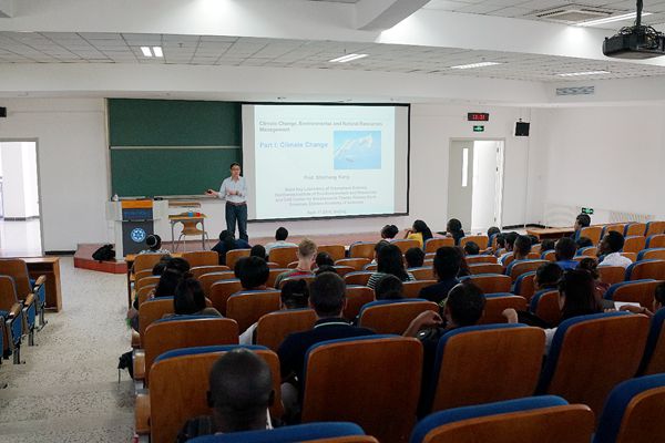 《Overview of Climate Change Science》由國際學(xué)院組織開設(shè),是面向國際留學(xué)生全英文授課的專業(yè)核心課,由來自西北研究院、中國科學(xué)院青藏高原研究所、復(fù)旦大學(xué)、中山大學(xué)的6位專家共同講授。課程主要對氣候變化科學(xué)作系統(tǒng)性概要介紹,使研究生認(rèn)識氣候變化科學(xué)的基本理論體系和主要研究內(nèi)容,掌握氣候變化的重要研究方法和手段,了解氣候變化研究的前沿方向和熱點問題。課程具有如下特色:融合課堂講授、專題講座、分組報告和討論答疑等多種教學(xué)模式;在系統(tǒng)化理論知識講授基礎(chǔ)上,增加氣候變化前沿、學(xué)科發(fā)展歷史和野外科考圖片視頻等多樣教學(xué)內(nèi)容;鼓勵留學(xué)生關(guān)注各自國家和地區(qū)、中國和全球氣候變化研究的進(jìn)展和應(yīng)對氣候變化的行動,培養(yǎng)學(xué)生共同應(yīng)對氣候變化挑戰(zhàn)和構(gòu)建人類命運共同體的理念。該課程自2015年開設(shè)以來,已有來自“一帶一路”沿線和歐美等近30個國家500多名留學(xué)生選修該課程,受到留學(xué)生的歡迎和廣泛好評。