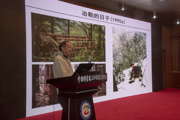 魏輔文院士以他的學(xué)術(shù)生涯為主線,講述了其自20世紀(jì)80年代開始從事大熊貓的研究工作,從最初的大熊貓野外調(diào)查、觀察,到率先將種群基因組學(xué)、宏基因組學(xué)、比較基因組學(xué)等新技術(shù)應(yīng)用到大熊貓研究中,闡明了大熊貓的種群歷史、瀕危過程及演化潛力,揭示了大熊貓?jiān)谑承赞D(zhuǎn)換和特化歷程中如何在形態(tài)、行為、生理、遺傳和腸道微生物等方面產(chǎn)生適應(yīng)性演化的規(guī)律;闡明了棲息地破碎化導(dǎo)致大熊貓孤立小種群崩潰的機(jī)制,推動(dòng)了國家大熊貓放歸和棲息地廊道建設(shè)工程的實(shí)施。魏輔文首次提出“保護(hù)演化生物學(xué)”和“保護(hù)宏基因組學(xué)”新分支學(xué)科,并介紹了穩(wěn)定同位素分析技術(shù)和營養(yǎng)幾何模型分析等新技術(shù)和新方法。魏院士結(jié)合自己30多年在保護(hù)生物學(xué)領(lǐng)域的經(jīng)歷,鼓勵(lì)大家在科學(xué)道路上堅(jiān)持思考,不斷探索,勇于創(chuàng)新。此次報(bào)告大大開拓了與會人員的學(xué)術(shù)視野,鼓舞了廣大科技人員的科研熱情。