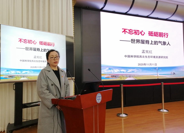報告會特邀2019 年“中國科學(xué)院年度感動人物”入選者孟憲紅研究員作《不忘初心、砥礪前行——世界屋脊上的氣象人》主題報告。孟憲紅研究員從“懷揣夢想、千里求學(xué)”“情系高原、筑夢大氣”“潛心科研、銳意進取”“不忘初心、”砥礪前行四個方面分享了她的求學(xué)、科研經(jīng)歷和感悟。從樸實無華的語言中令人看到她帶領(lǐng)團隊始終秉承“特別能吃苦、特別能戰(zhàn)斗、特別能奉獻、特別能團結(jié)、特別能忍耐”的“牦牛精神”,面對困難她披荊斬棘、堅守信念,把科學(xué)研究當(dāng)作自己的生命,用勤奮鋪就科研之路,用韌性點燃科研之旅。
