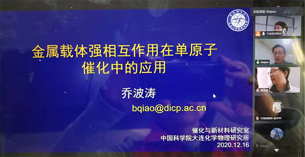 12月16日,應羰基合成與選擇氧化國家重點實驗室邀請,中國科學院大連化學物理研究所喬波濤研究員與中國科學院蘭州化學物理研究所進行線上學術交流,并作了題為“金屬載體強相互作用在單原子催化中的應用”的學術報告。