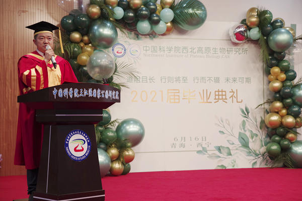 六月,綠意盎然,草長鶯飛;六月,畢業(yè)別離,青春留影;六月,新的征程,期待滿懷。6月16日下午,中國科學(xué)院西北高原生物研究所2021屆研究生畢業(yè)典禮在學(xué)術(shù)報告廳舉行。所長陳世龍、黨委書記張景光,副所長楊其恩,管理部門負(fù)責(zé)人、優(yōu)秀導(dǎo)師代表、2021屆全體畢業(yè)生及畢業(yè)生家長代表一同參加了典禮。畢業(yè)典禮由張景光主持。