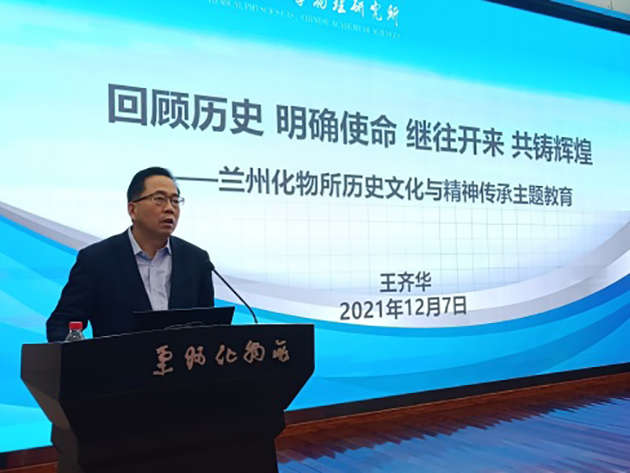 王齊華表示,蘭州化物所建所60余年以來,經過幾代科研工作者的艱苦努力、開拓創(chuàng)新,為國家經濟建設、科技事業(yè)發(fā)展做出了重大貢獻。黨的十八大以來,黨中央高度重視科技創(chuàng)新,把科技創(chuàng)新放在國家發(fā)展全局的核心位置。青年科研人員和管理與支撐部門人員要牢記新時期責任與使命,深入了解研究所光輝歷程,繼承和發(fā)揚老一輩科學家胸懷祖國、服務人民的優(yōu)秀品質,弘揚新時代科學家精神,深刻領會“國家事”“國家責”的內涵和要求,牢記“國家隊”“國家人”的使命擔當,立足崗位實際,為研究所科技創(chuàng)新和改革發(fā)展做出應有的貢獻,為實現(xiàn)習近平總書記對中科院提出的“四個率先”和“兩加快一努力”要求和建設世界科技強國貢獻智慧和力量。