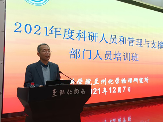 12月7日,中國科學院蘭州化學物理研究所舉辦青年科研人員和管理與支撐部門人員培訓班,200余人參加培訓。所長、黨委書記王齊華,黨委副書記、紀委書記張長春出席培訓會,副所長張俊彥主持培訓會。