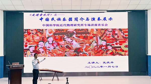 本次論壇以《<走進音樂廳>之中科院近代物理所新年民樂專場講座》為主題,報告人孔慶丹教授來自于西北師范大學音樂學院,報告人詳細介紹了包括笛、嗩吶、笙、二胡、琵琶、柳琴、阮、箏等在內(nèi)的多種傳統(tǒng)民間樂器,同時配以現(xiàn)場演奏的方式,使得大家認識欣賞樂器的同時也深入了解了各類民樂的表現(xiàn)形式以及音樂廳文化,對民樂有了更加立體、直觀的認識。報告結束,大家就如何提高個人藝術修養(yǎng)以及對青少年的音樂啟蒙教育等問題與主講人進行了熱烈的探討和交流。