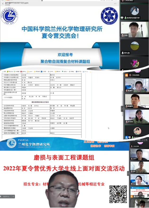 7月10至15日,中國科學院蘭州化學物理研究所舉辦了2022年“蘭化行,科研情”優(yōu)秀大學生線上夏令營。本次夏令營與中科院蘭州教育基地“我的科學夢”優(yōu)秀大學生暑期學校同期舉行,來自吉林大學、青海大學、山東師范大學等高校的70名優(yōu)秀大學生參加了夏令營。結合疫情防控要求,夏令營以線上形式舉行。