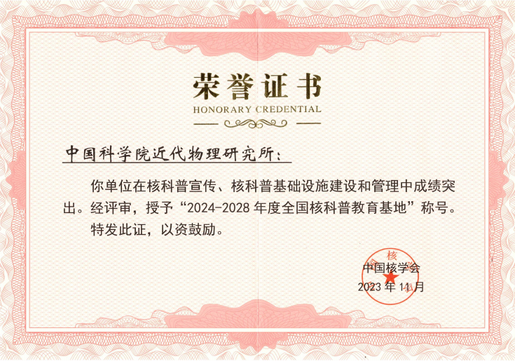 近日,在中國核學會組織開展的2024-2028年度“全國核科普教育基地”評選中,近代物理所被認定為“2024-2028年度全國核科普教育基地”。