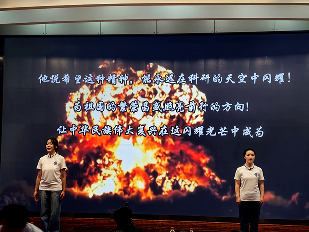 宣講會邀請了中國科學院大學“兩彈一星”精神宣講團作了“青年挺膺擔?厚植家國情懷”的專題宣講,以“講述信仰故事、演繹時代精神、傳承文化使命”為主線,通過宣講、演繹、短劇等不同形式表演了《啟航》《執(zhí)著》《家書》《追夢者?逐夢者》《做祖國的 “鏈條”》等節(jié)目,講述5位元勛矢志報國的動人故事,帶領現(xiàn)場師生沉浸式聆聽了老一輩科學家的動人故事,回望了那段艱苦卓絕卻又激情燃燒的歲月,體味了老一輩科學家熱愛祖國、無私奉獻的家國情懷。