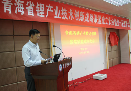 青海省鋰產(chǎn)業(yè)技術(shù)創(chuàng)新戰(zhàn)略聯(lián)盟成立大會上,青海鹽湖所主持工作的副所長段東平代表鋰聯(lián)盟籌備組匯報了聯(lián)盟成立背景及籌備工作情況,青海省科技廳副廳長張超遠(yuǎn)宣讀了成立青海省鋰產(chǎn)業(yè)技術(shù)創(chuàng)新戰(zhàn)略聯(lián)盟的文件,并與青海省質(zhì)量技術(shù)監(jiān)督局副局長王穎鳴共同為青海省鋰產(chǎn)業(yè)技術(shù)創(chuàng)新戰(zhàn)略聯(lián)盟揭牌。
