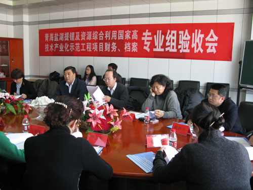 2009年11月30日,由中國科學(xué)院主持的“青海鹽湖提鋰及資源綜合利用”國家高技術(shù)產(chǎn)業(yè)化示范工程財(cái)務(wù)和檔案專業(yè)組驗(yàn)收會在西寧召開。會議由中國科學(xué)院計(jì)劃財(cái)務(wù)局項(xiàng)目處趙志剛處長主持,青海鋰業(yè)有限公司董事長兼總經(jīng)理李增榮、中國科學(xué)院基本建設(shè)局工程處處長尹明、我所所長助理王永晏和財(cái)務(wù)、檔案驗(yàn)收專業(yè)組專家及有關(guān)人員參加了會議。