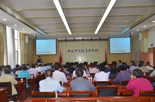 5月31日上午,應(yīng)蘭州分院分黨組邀請(qǐng),廣州分院分黨組“兩學(xué)一做”學(xué)習(xí)教育巡講團(tuán)一行三人來蘭作報(bào)告。蘭州地區(qū)院屬6個(gè)單位的所長、書記、副所長、副書記16人,黨委、紀(jì)委委員,中層管理骨干,研究室、實(shí)驗(yàn)室、中心主任、課題組長等科研骨干,黨支部書記與離退休黨員代表,以及分院機(jī)關(guān)全體干部共100余人參加了報(bào)告會(huì)。報(bào)告會(huì)由蘭州分院分黨組書記、副院長謝銘主持。