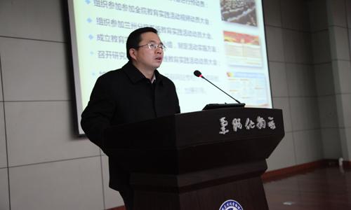 王齊華代表研究所領(lǐng)導(dǎo)班子向與會人員簡要通報了蘭州化物所群眾路線教育實(shí)踐活動的進(jìn)展情況。自教育實(shí)踐活動開展以來,蘭州化物所黨委認(rèn)真貫徹落實(shí)中央和中科院黨組的部署和要求,在中科院第五督導(dǎo)組和蘭州分院黨組的悉心指導(dǎo)下,結(jié)合實(shí)際、精心組織,認(rèn)真開展學(xué)習(xí)教育、廣泛深入征求意見、圍繞“四風(fēng)”查擺問題、堅(jiān)持邊查邊改、開展談心交心活動、撰寫對照檢查材料等活動,在思想上、組織上和行動上做了大量扎實(shí)有效的工作。接下來,他從專題民主生活會召開的基本情況、會前準(zhǔn)備、開展批評與自我批評、制定整改措施、下一步主要工作等方面向大家通報了專題民主生活會召開情況。他重點(diǎn)向大家通報了領(lǐng)導(dǎo)班子在“四風(fēng)”方面查擺出的突出問題及改進(jìn)措施、領(lǐng)導(dǎo)班子成員之間開展批評與自我批評的情況。他還向大家通報了中科院第五督導(dǎo)組組長蔣協(xié)助和蘭州分院副院長楊生榮在專題民主生活會上的指導(dǎo)意見。